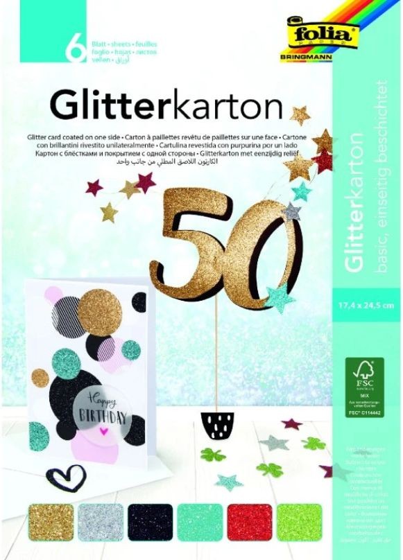 Popis Barevný papír se třpytkami, 17,4 x 24,5 cm, 6 listů