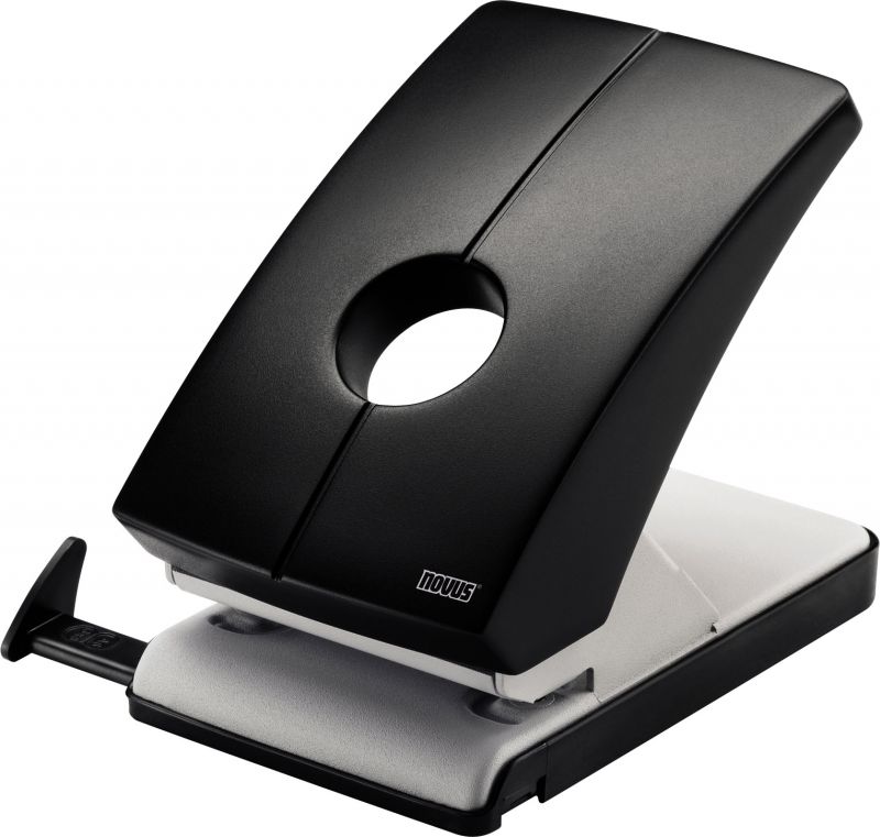 Registrační děrovač s aretací horního dílu a posuvným pravítkem. Rozteč děr 8 cm. Barva šedá/černá. Max 40 listů. Záruka 10 let.