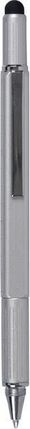 Pero, které zvládne víc Dárkové pero Grand Slam 5v1 od Gifty je elegantní kovové pero, které v sobě ukrývá pět praktických funkcí. Kromě klasické propisky s jemně píšícím modrým inkoustem nechybí ani šikovný šroubovák, který je důmyslně ukrytý pod dotykovou koncovkou pera. Na těle pera najdete měřítko – z jedné strany v centimetrech, z druhé v palcích (inches). Vestavěná vodováha usnadní kontrolu roviny a měkký stylus se hodí pro pohodlné ovládání dotykových zařízení. Hrot pera se vysouvá jednoduchým otočením těla – bez stiskacího mechanismu. Pero je precizně zpracované a jeho kovové tělo působí moderně a profesionálně. Dodává se v elegantní dárkové krabičce s logem Gifty a je ideálním dárkem pro každého, kdo ocení funkční a stylový doplněk pro každodenní použití. Hrot: 0,7 mm Barva: stříbrná Mechanismus: otočný Baleno v dárkové krabičce. Uvedená cena je za 1 ks.