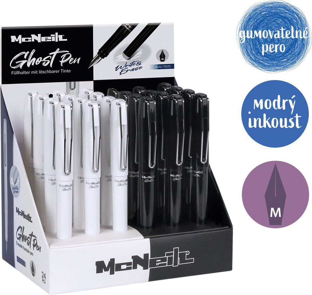 Popis Gumovatelné bombičkové pero McNeil, černo-bílé,disp. gumovatelné bombičkové pero McNeill
