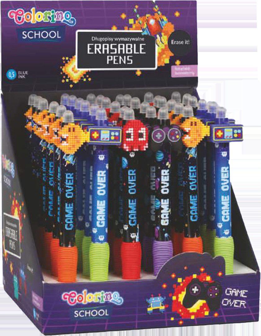Kolekce gumovatelných per s barevným tělem a roztomilými motivy počítačových her. Příjemný pogumovaný grip zajistí pohodlný úchop každému školákovi.