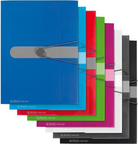 Easy orga, zavírání s gumičkou na plastový kroužek, PP, 3 chlopně, kapacita 300 listů.