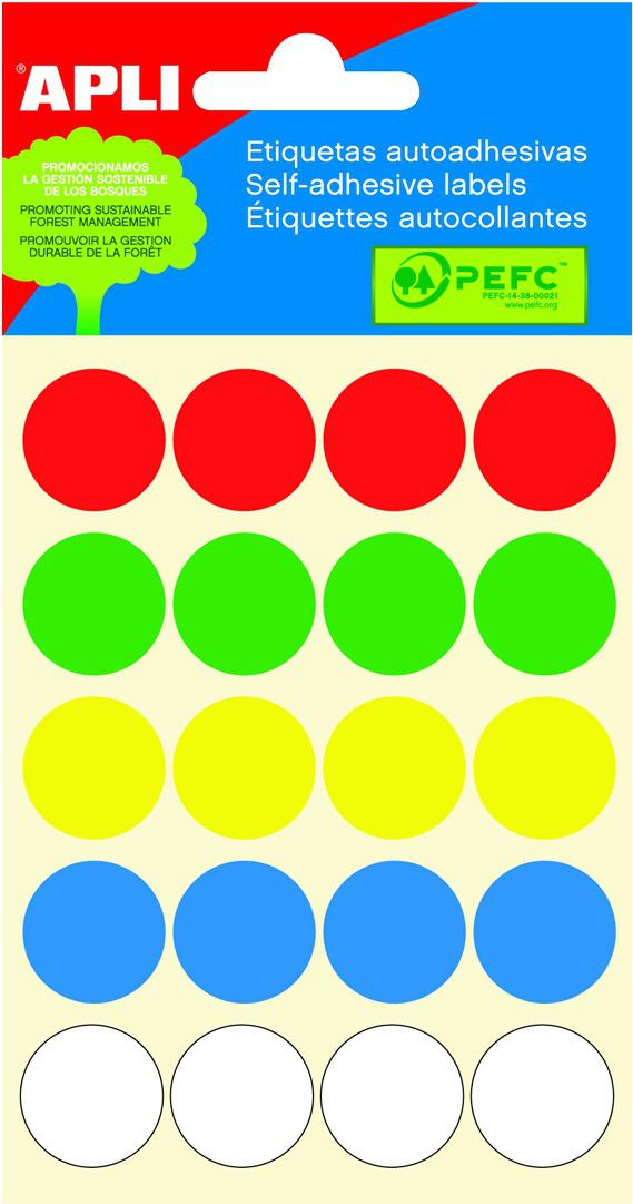 Barevné kulaté etikety pro značení a ruční popis.