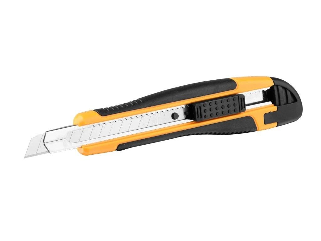- Odlamovací nůž Jumbo má odolné tělo z ABS plastu a protiskluzový grip z termoplastické gumy pro bezpečný úchop.