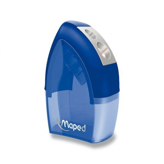 Kovové ořezávátko s průhlednou odpadní nádobkou a 2 otvory.