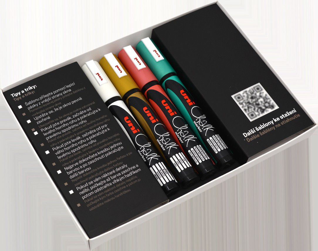 Vánoční sada křídový popisovač 4 ks+šablony PWE-5M