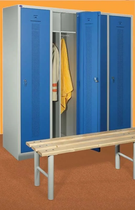 - Svislá vnitřní přepážka v každém oddíle odděluje prostor pro uložení pracovního a civilního oděvu.