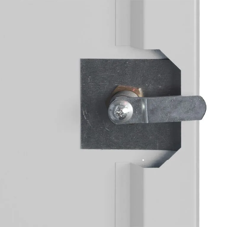 - Uzamykání - tříbodový rozvorový mechanismus uzavírající dveře do boku, horního víka a dna skříně + cylindrický zámek se 2 klíči vhodný pro generální klíč.