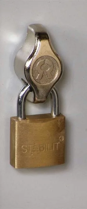 • Uzamykání - otočný uzávěr pro visací zámek - doporučený průměr třmene zámku = 6-7 mm anebo cylindrický zámek se 2 klíči vhodný pro generální klíč.