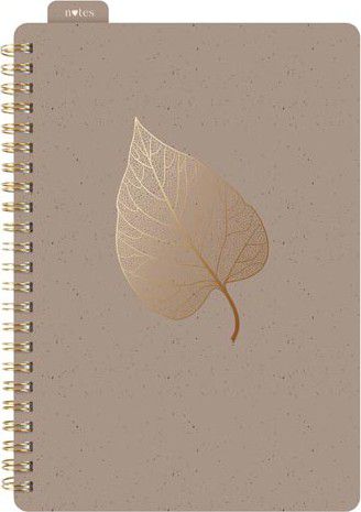Elegantní poznámkový blok ve formátu A5 s linkovanými stránkami a spirálovou vazbou je navržen pro ty, kdo hledají styl a praktičnost v jednom. Obálka v teplém hnědém odstínu je doplněna o jemný zlatý motiv listu, který bloku dodává nádech přírody a sofistikovanosti. Gumička udržuje blok pevně zavřený, aby vaše poznámky zůstaly chráněné, a záložka „notes“ vám pomůže rychle se zorientovat na správné stránce. Motiv: list Formát: A5 Barva: hnědá Počet listů: 80, s linkami Gramáž listů papíru: 80 g/m2 Uvedená cena je za 1 ks.