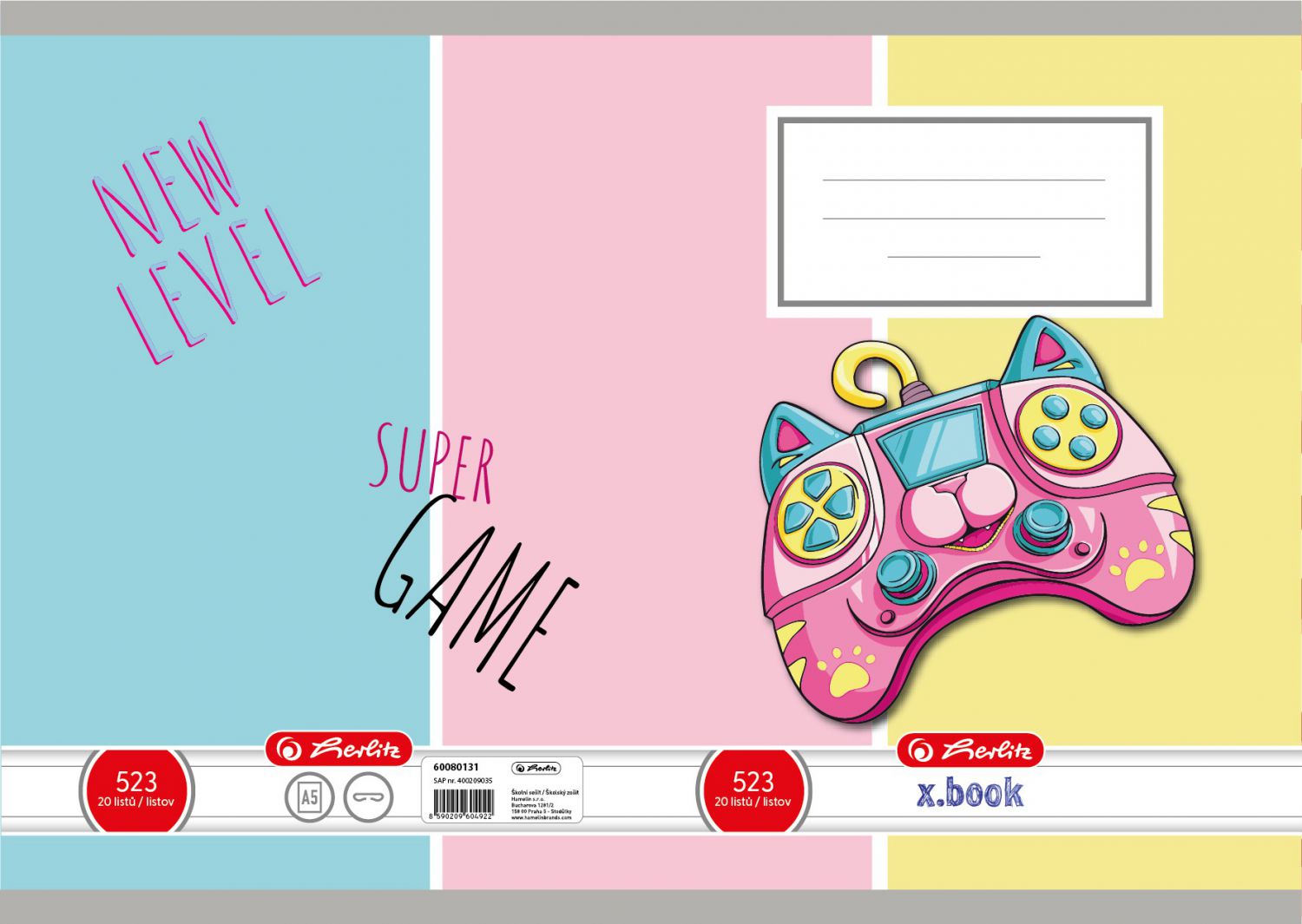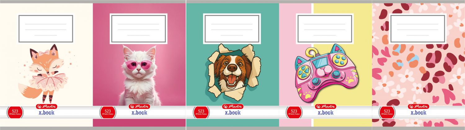 - Motivy lišky, kočky, psa, gamepadu a květin dodávají sešitu hravý a veselý vzhled.
