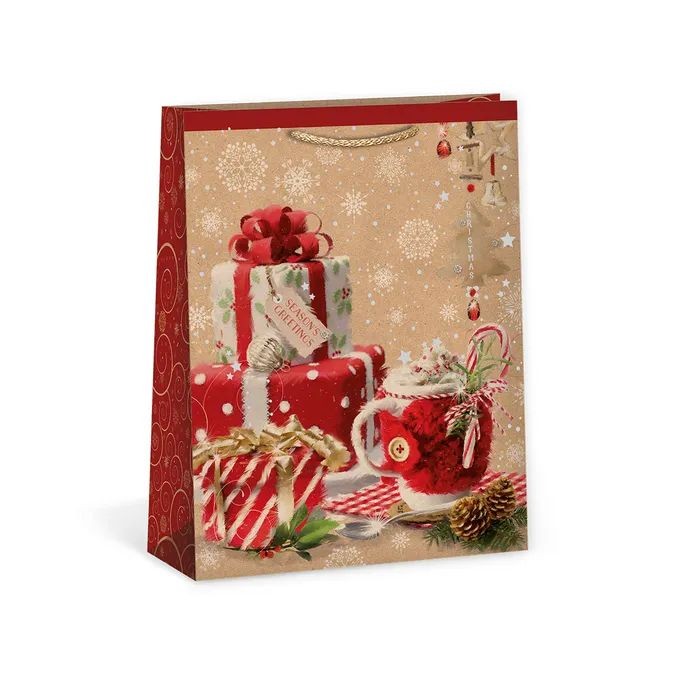 - Vánoční papírová dárková taška NATUR s originálním designem.