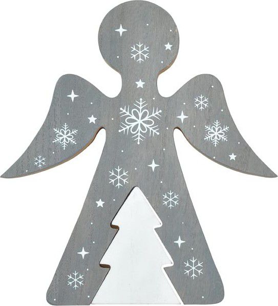 Dekorace Anděl dřevo šedý 19x17x1,8cm