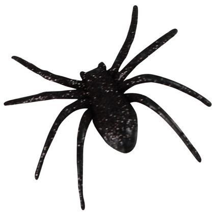 - Malí plastoví, třpytiví pavouci v černé barvě, jsou senzační dekorací na Halloweenskou párty!