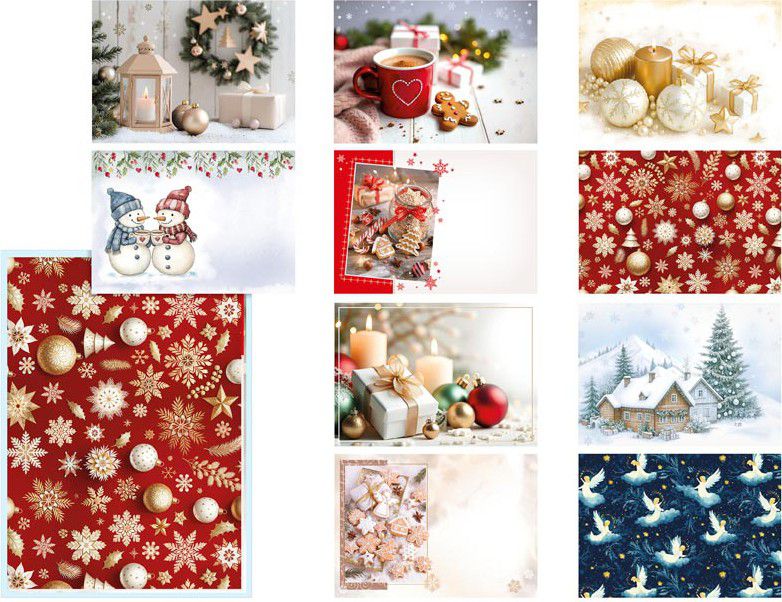 - Obálka je dostupná v několika různých vánočních motivech – od veselých sněhuláků a zimních krajinek až po elegantní sváteční vzory.