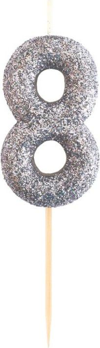Dortová svíčka číslice 8 GLITTER, černá