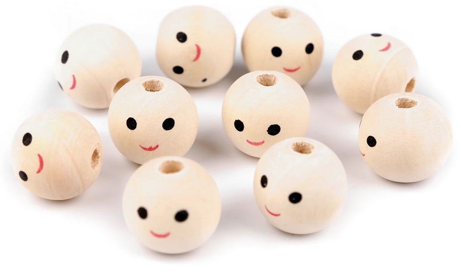 Dřevěné korálky s obličejem Ø18 mm, 10ks