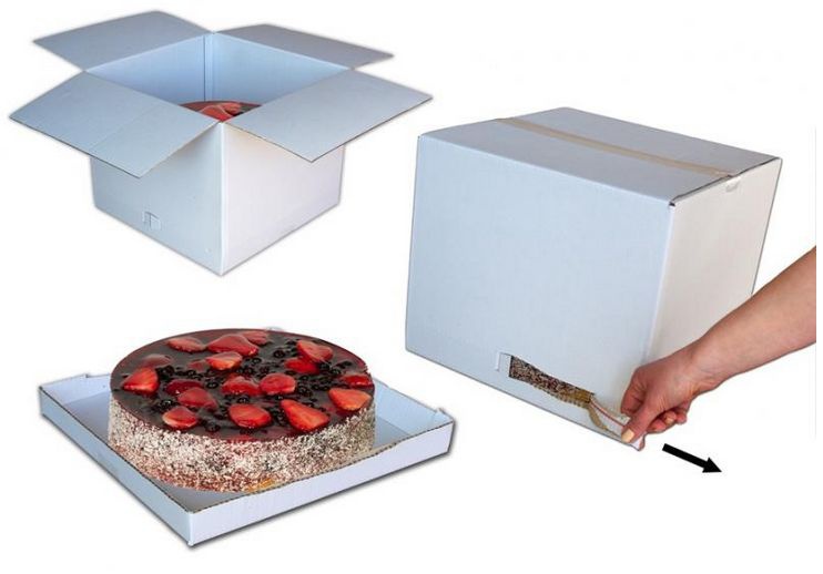 - Pevná krabice z vlnité lepenky, určená například pro spolehlivou přepravu dortů a jiných potravinářských produktů.