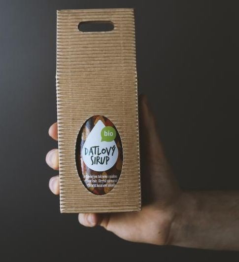 - Jednodílná dárková krabička s okénkem z dvouvrstvé vlnité lepenky a odnosným ouškem.