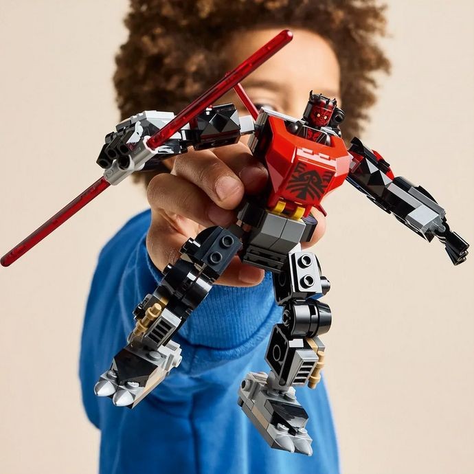 Děti a fanoušci od 6 let objeví temnou stranu Síly se stavebnicí LEGO Star Wars Darth Maul a jeho robotický oblek. Tento snadno sestavitelný pohyblivý robotický oblek vypadá jako Darth Maul v bitvách o planetu Mandalore v seriálu Star Wars: Klonové války. Robotický oblek má otevírací kokpit pro minifigurku LEGO Star Wars Dartha Maula, klip na červený světelný meč s dvojitým ostřím pro minifigurku a ruce, které drží velký červený světelný meč s dvojitým ostřím. Připojte na zadní část robotického obleku průzkumného droida LEGO Star Wars a užijte si ještě větší porci zábavného hraní na postavy. Darth Maul a jeho robotický oblek je součástí řady robotických obleků LEGO Star Wars (prodávají se samostatně) a představuje skvělý dárek pro děti a fanoušky k jakékoli příležitosti.