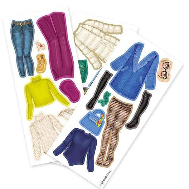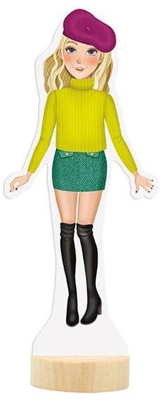 - Balení obsahuje oblékací postavičku, 3 archy magnetických částí oblečení, bot a doplňků a dřevěný podstavec.