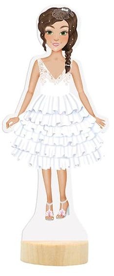 - Balení obsahuje: oblékací postavičku, 3 archy magnetických částí oblečení, bot a doplňků a dřevěný podstavec.