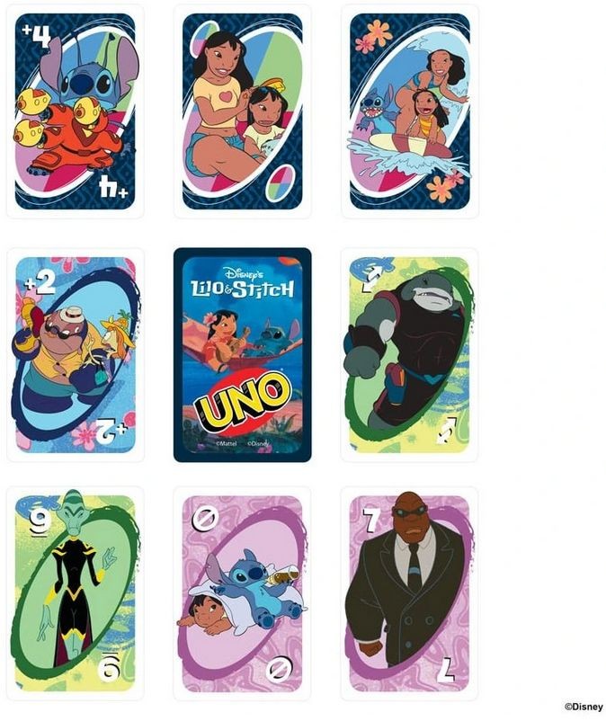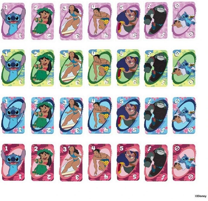 - S balíčkem karet, inspirováným oblíbenými postavami a scénami z Lilo a Stitch, se hráči snaží spojit barvy a čísla jako v klasické hře UNO.