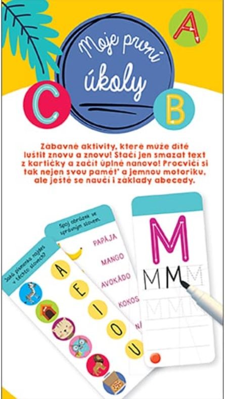 - Balení obsahuje 20 oboustranných stíratelných kartiček s aktivitami a černý fix, vše v praktickém uzavíratelném pouzdře.