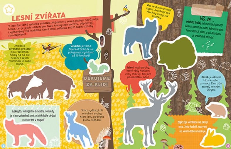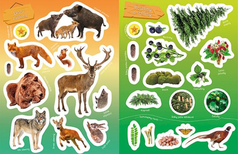 - Naučná samolepková knížka obsahuje 16 tematických stran s fotografiemi a více než 100 samolepek pro dolepení.