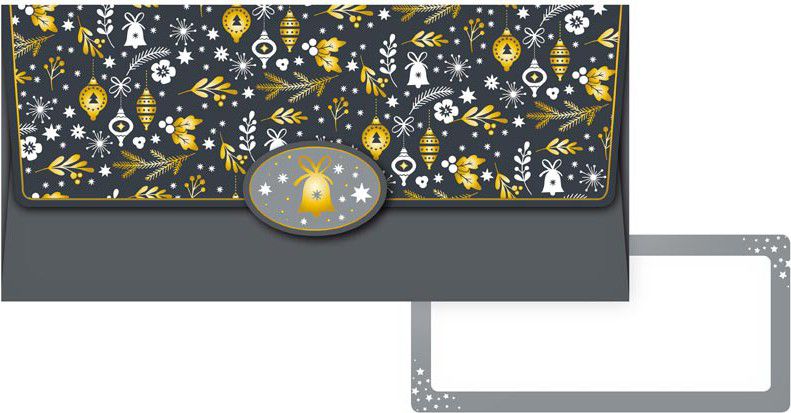 Dárková obálka na peníze s vánočním motivem a uzavíratelnou klopou.