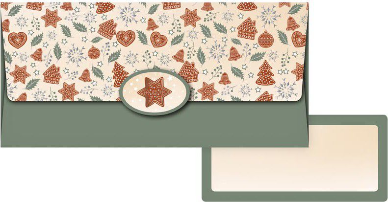 Dárková obálka na peníze s vánočními motivy a uzavíratelnou klopou.