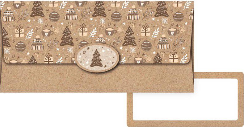 Dárková obálka na peníze s vánočními motivy a uzavíratelnou klopou.
