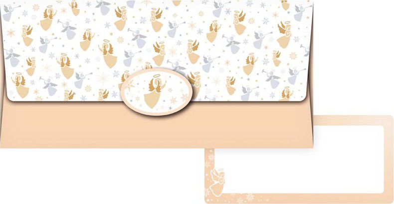 Dárková obálka na peníze s vánočním motivem andělů a uzavíratelnou klopou.