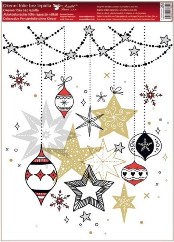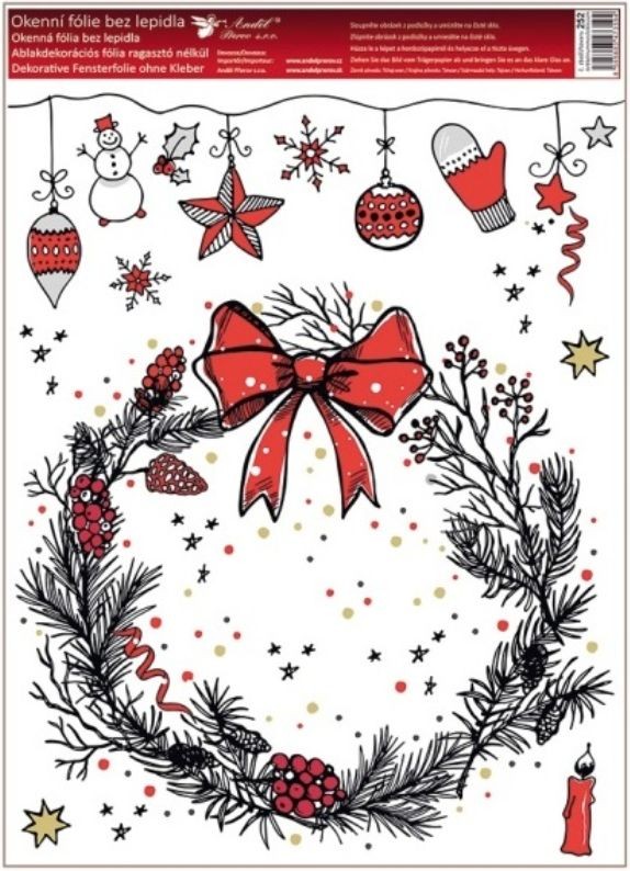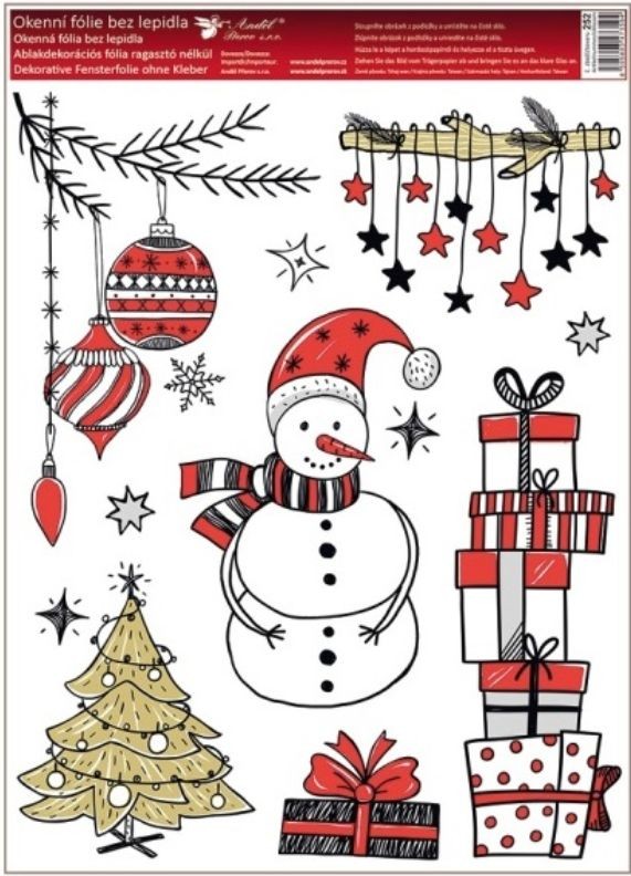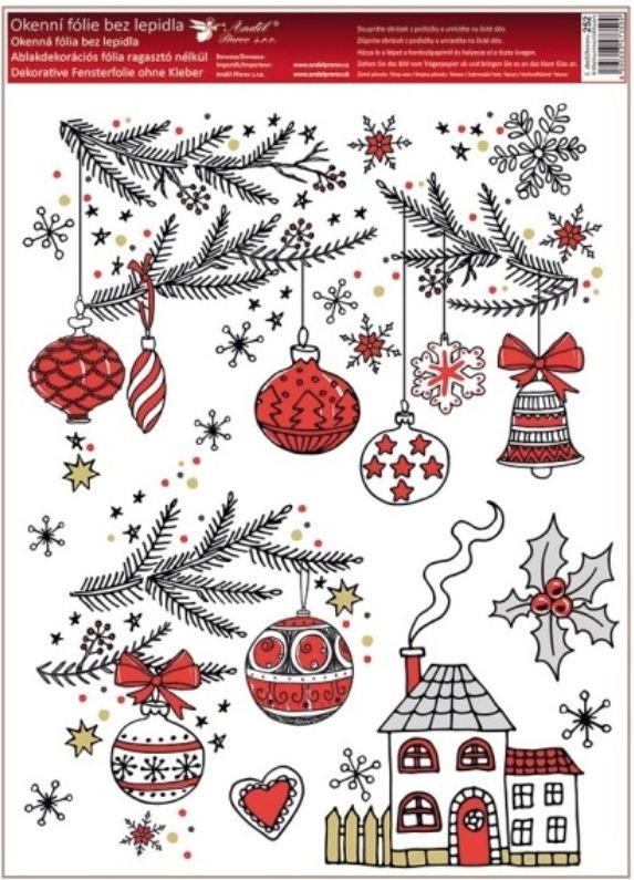 Barevná okenní fólie s tradičními vánočními motivy o rozměru 30 × 42 cm rozveselí každé okno a přinese tu pravou sváteční atmosféru. Přilne elektrostaticky – bez lepidla, nezanechává žádné stopy, snadno se aplikuje a lze ji opakovaně použít.