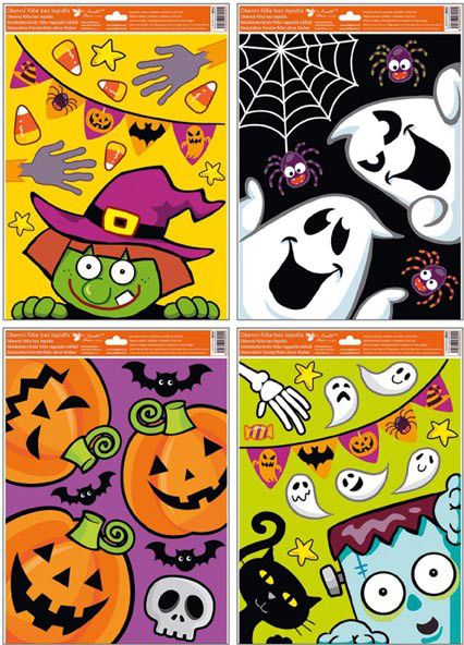 Dekorační okenní fólie vykukující strašidla s veselými a barevnými halloweenskými motivy.