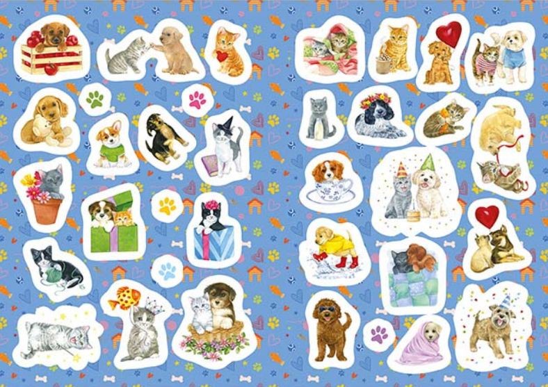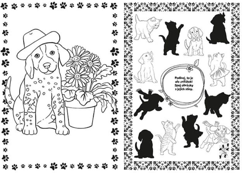 - Omalovánky s motivy roztomilých štěňátek a koťátek obsahují 24 stran s obrázky a oblíbenými aktivitami a více než 20 samolepek k ozdobení.