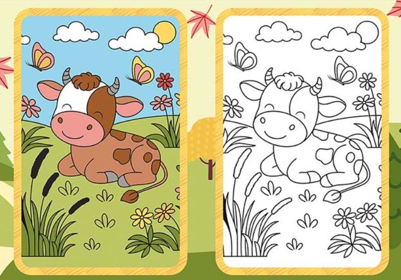 - Omalovánky obsahují 9 černobílých obrázků k vybarvení a 9 barevných předloh.