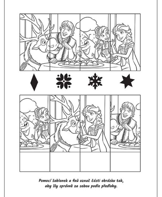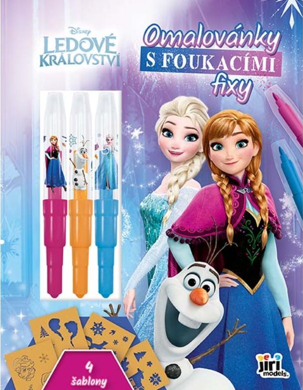 - Omalovánky obsahují 16 stran s obrázky k vybarvení, 3 barevné foukací fixy a 4 šablonky.