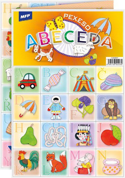 Výborná učební pomůcka pro děti a rodiče. Naučte své děti poznávat abecedu a procvičujte jejich paměť. Tato hra je zabaví na dlouhé hodiny. Pexeso se skládá ze tří A4, na kterých najdete 64 kartiček malovaných obrázků a návod ke hře. Ke každému písmenu je přiřazena věc začínající na dané písmeno.