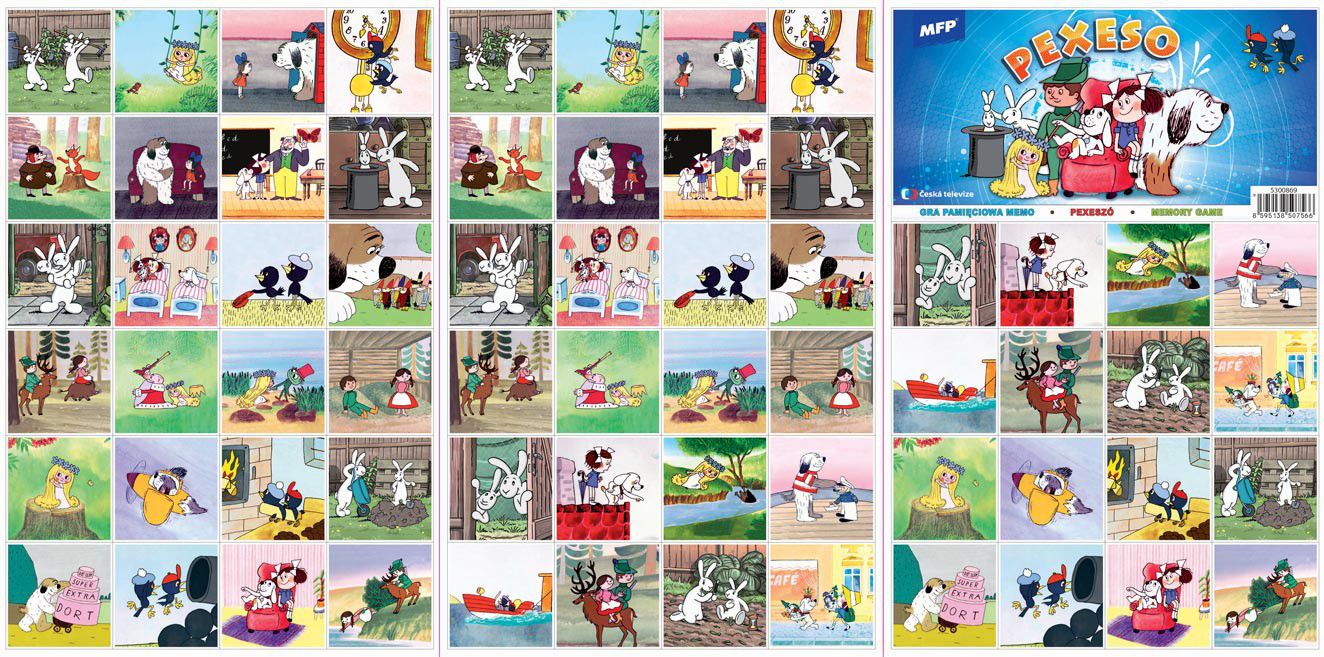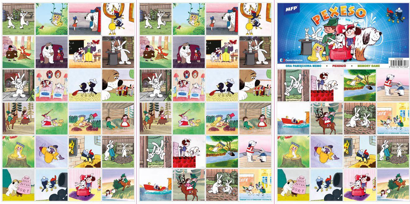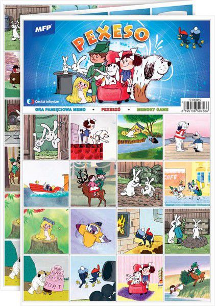 PEXESO je populární dětská stolní hra, která nikdy neomrzí a zapojit se můžou i dospělí. Pexeso - Večerníčky z ČT nás zavede zpět do pohádkového světa ČT. Bob a Bobek, Víla Amálka, Maxipes Fík a mnoho dalších naleznete v tomto pexesu. Věděli jste, že slovo PEXESO vzniklo souslovím slov PEKELNĚ SE SOUSTŘEĎ? Výborná učební pomůcka pro děti a rodiče. Naučte své děti poznávat nová slovíčka a procvičujte jejich paměť. Tato hra je zabaví na dlouhé hodiny. Pexeso se skládá ze tří A4, na kterých najdete 64 kartiček obrázků z českých pohádek a večerníčků a návod ke hře.