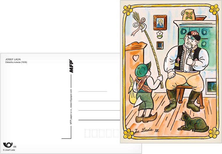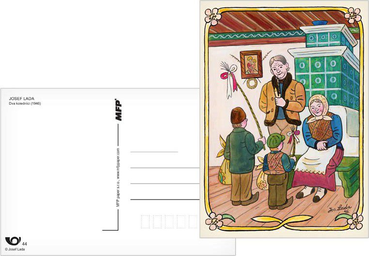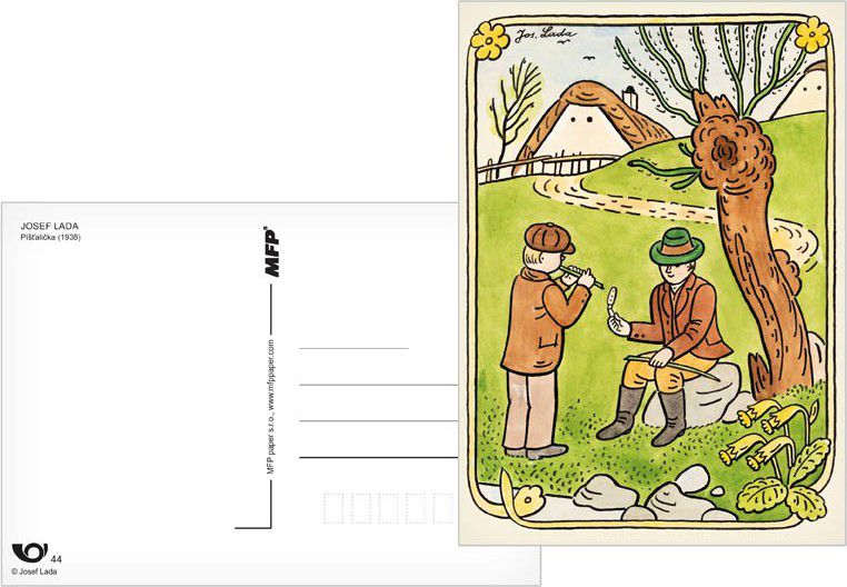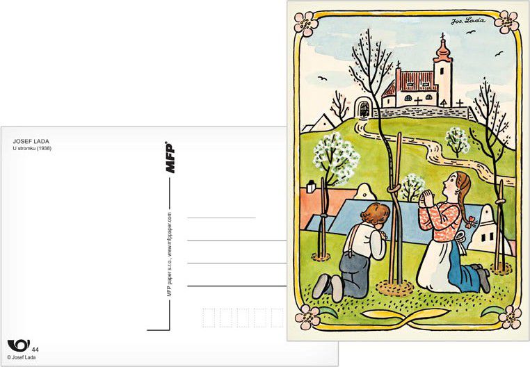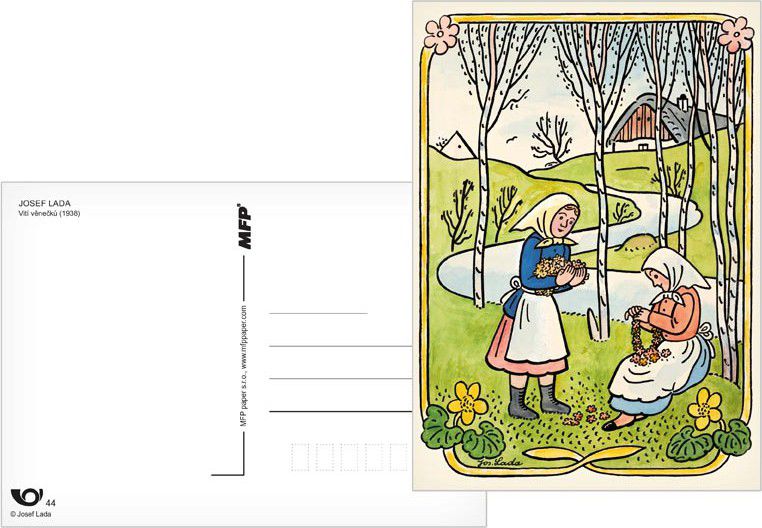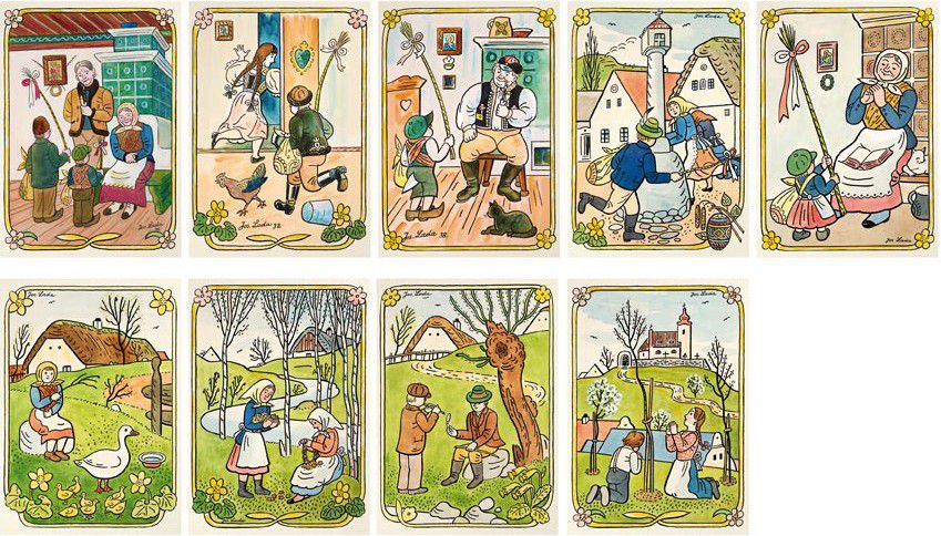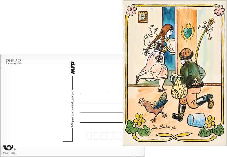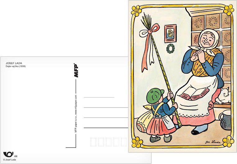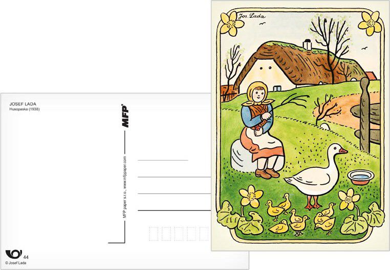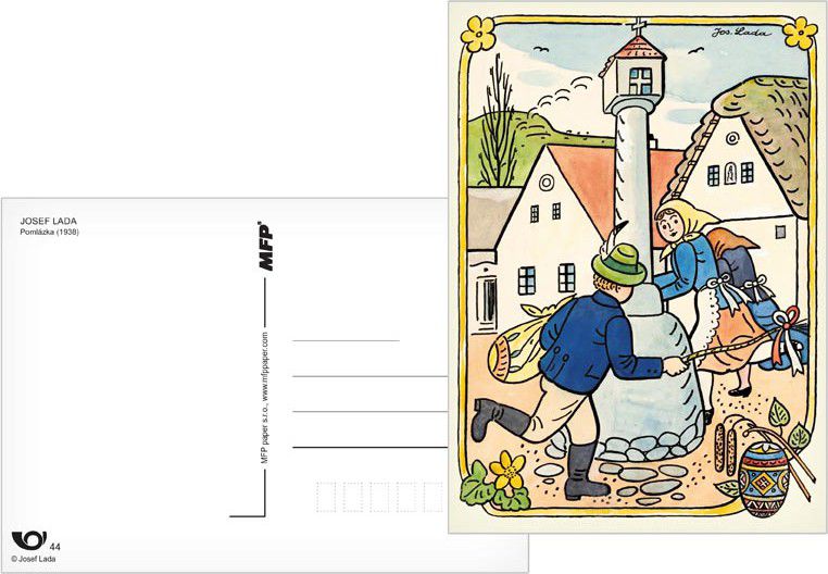 Velikonoční pohlednice s krásnou ilustrací od Josefa Lady, která znázorňuje české tradice harmonického venkova. Popřejte svým blízkým krásné svátky jara. Pohledy jsou bez textu na zadní straně.