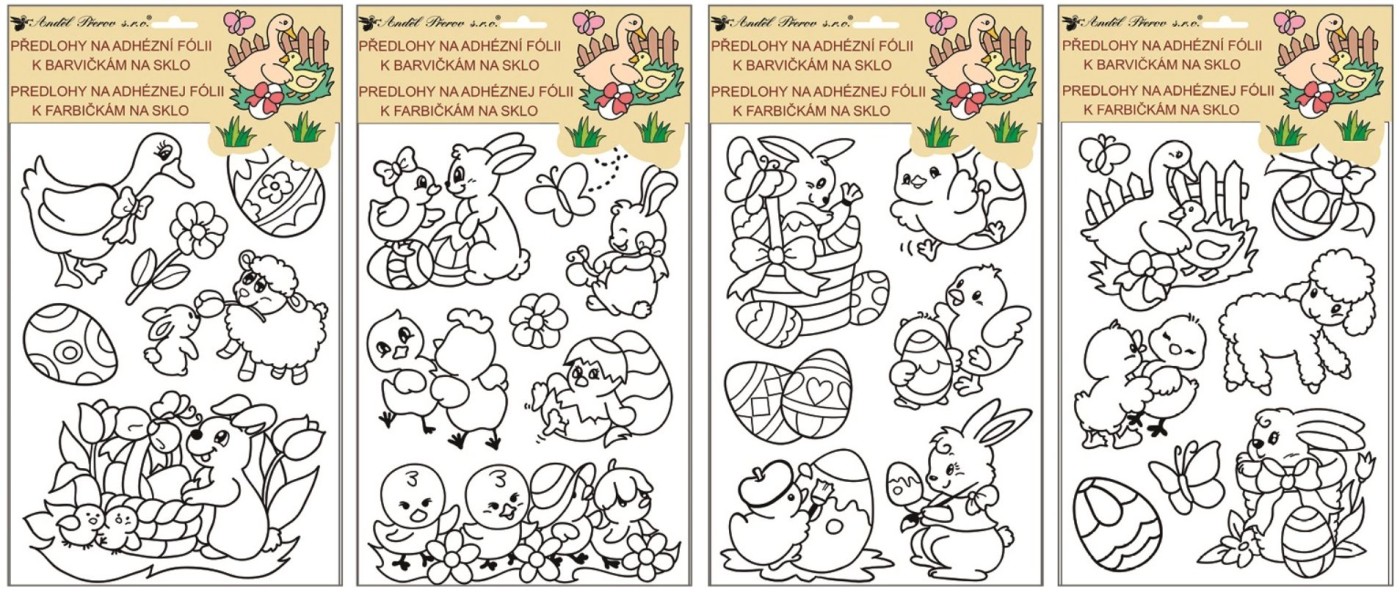 Tyto adhezní předlohy s velikonočními motivy nabízí perfektní základ pro vaši kreativitu. Předlohy s vyvýšenou černou konturou jsou připravené k vybarvení pomocí barev na sklo, barevných lepidel, glitrů a dalších technik. Ideální pro vytváření krásných dekorací na sklo, okna nebo jiné hladké povrchy.