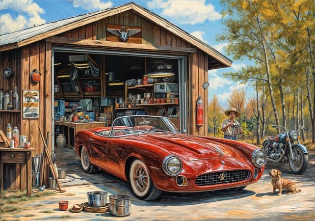 Popis Puzzle XL 300 dílků Jaguár v garáži
