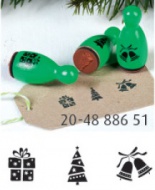 dřevěná vánoční set 2 ks razítek a poduška zelenočervená.