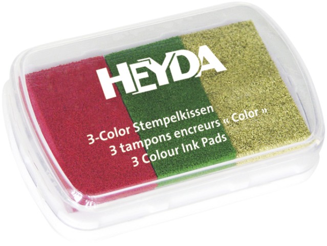 Razítkovací polštářek 3 barvy - červená, zelená a zlatá.