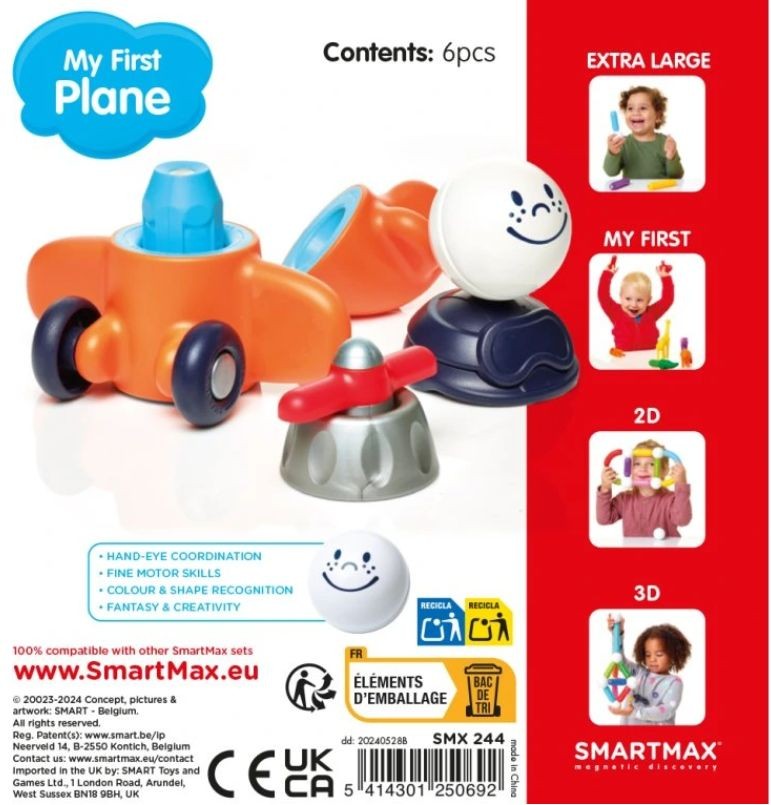 - Nechte děti kombinovat a tvořit. Tato stavebnice je kompatibilní s dalšími sadami SmartMax, což umožňuje vytvoření jedinečných a zábavných letadel podle vlastní fantazie. Díky magnetickým spojům jsou možnosti skutečně neomezené! Dílky se snadno a bezpečně spojují, což zaručuje bezproblémové sestavení i pro nejmenší děti.