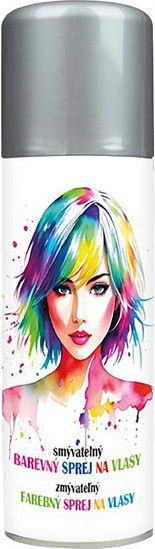 Spray na vlasy stříbrný. Chceš si vytvořit cool účes na párty? Tak neváhej a kup si tento super spray! Spray se používá k barvení vlasů a paruk. NÁVOD K POUŽITÍ: Skladujte a používejte za pokojové teploty. Před použitím dobře protřepejte. Držte lahvičku rovně a stříkejte v krátkých intervalech ze vzdálenosti 20 cm. Vyhněte se očím a obličeji. Oblečení a syntetické materiály chraňte před uspiněním. Nepoužívejte na odbarvené, barvené nebo natrvalené vlasy. U velmi světlých vlasů mohou tmavé odstíny zanechat po prvním umytí barevný nádech. Nepoužívejte pro děti. Prázdnou nádobku odevzdejte do sběru nebezpečného odpadu. Tato barva je dobře smývatelná šampónem i vodou. Zboží je zdravotně nezávadné. Objem: 125 ml Uvedená cena je za 1 ks.