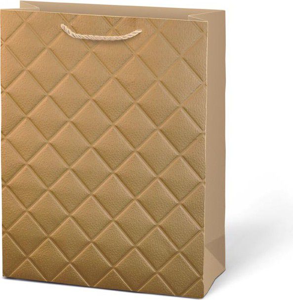 - Povrch tašky má jemný reliéfní vzor ve tvaru kosočtverců, který působí decentně a dodává dárku reprezentativní vzhled.