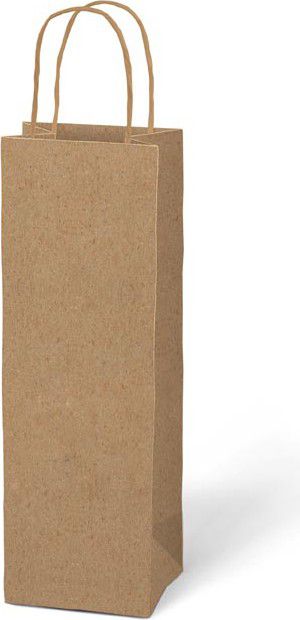 Papírová dárková taška T12 vhodná na víno nebo jinou lahev v přírodní barvě. Je vyrobená z pevného kraftového papíru, díky kterému je odolná proti protržení. Taška má kroucená papírová ucha.