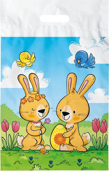Igelitová taška s potiskem velikonočních zajíčků.
